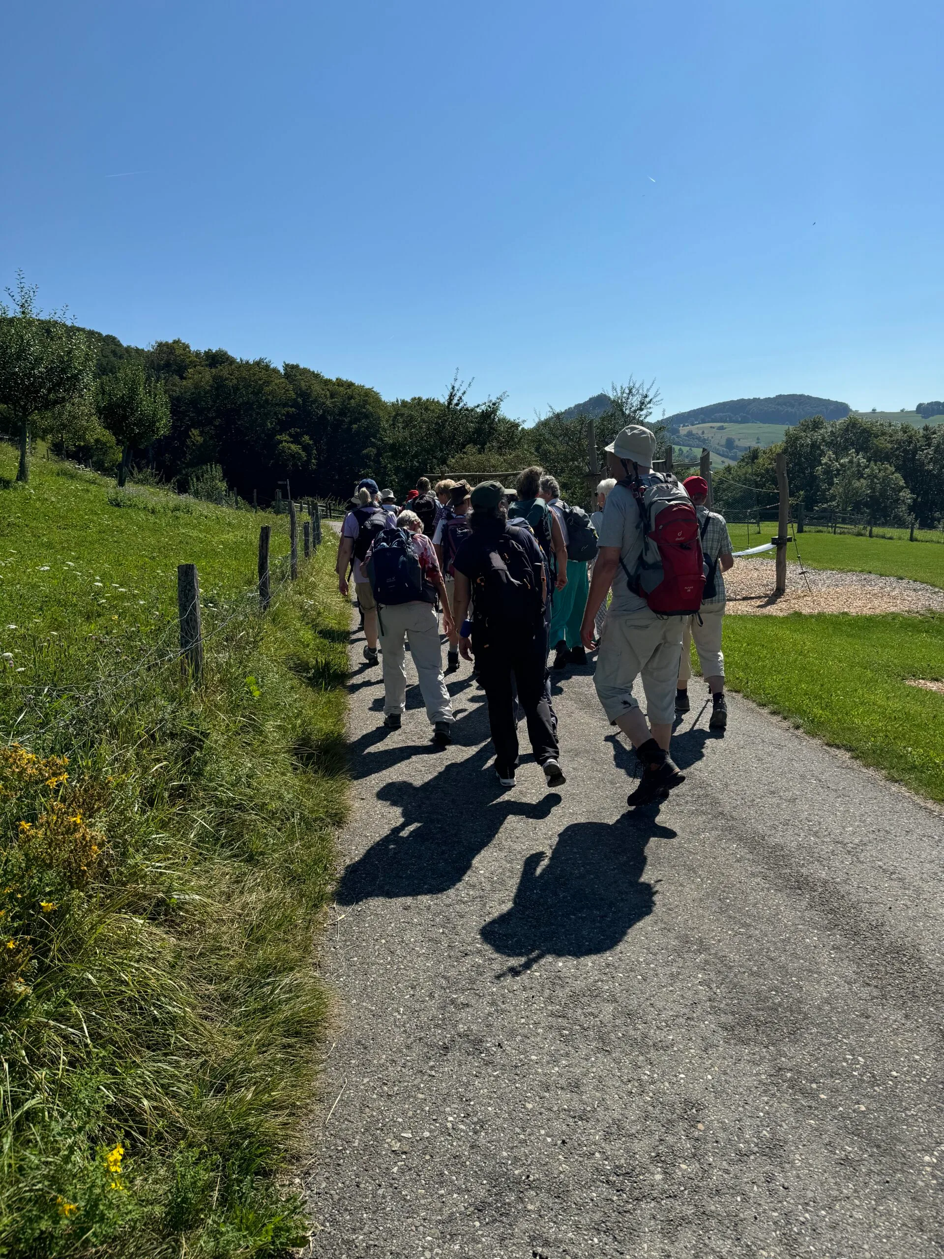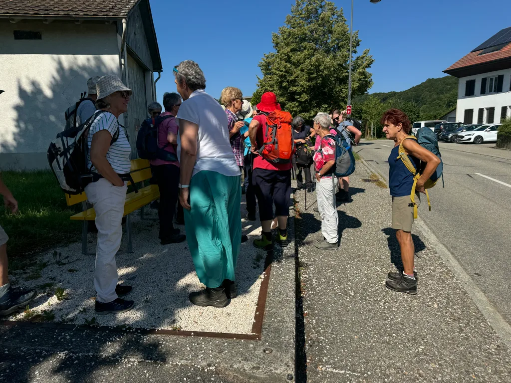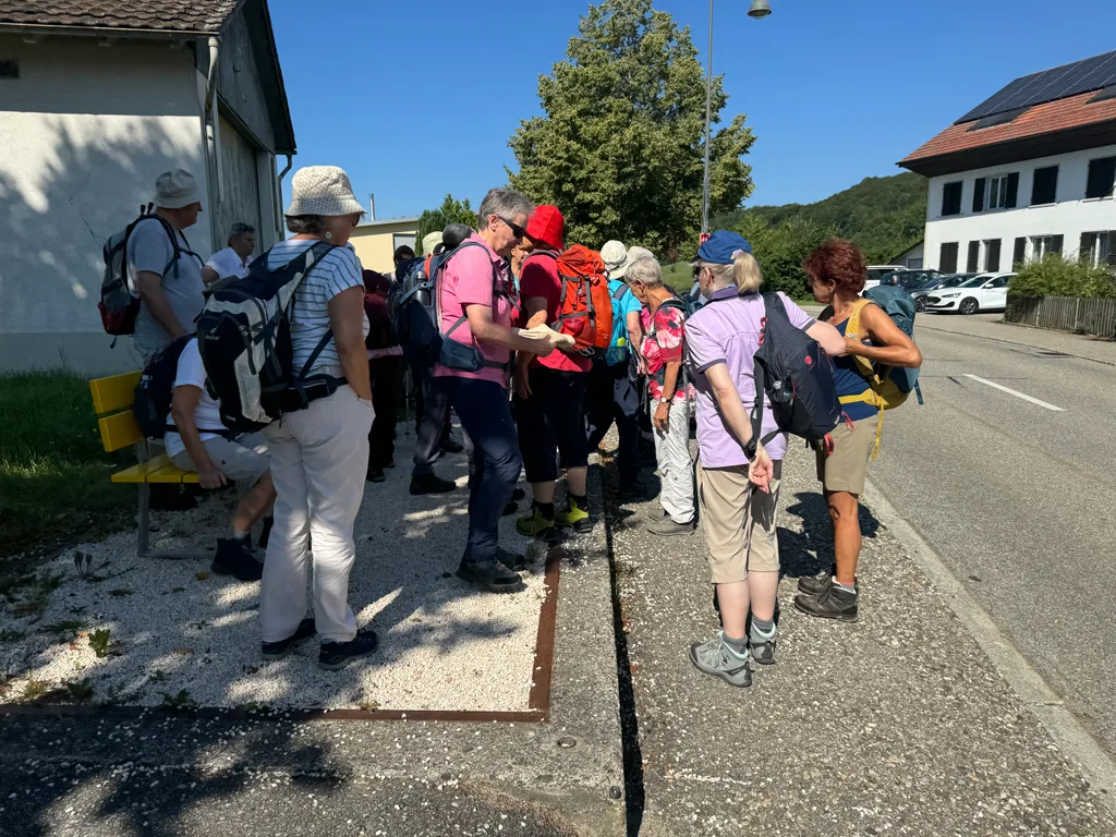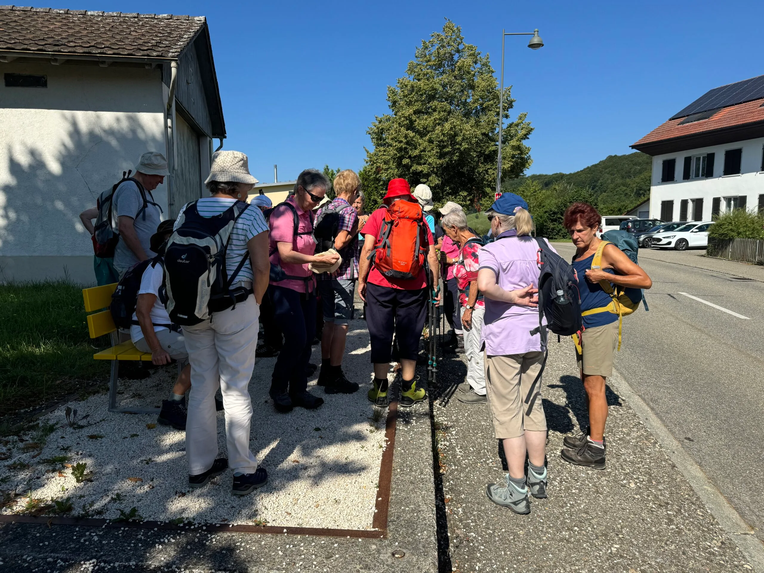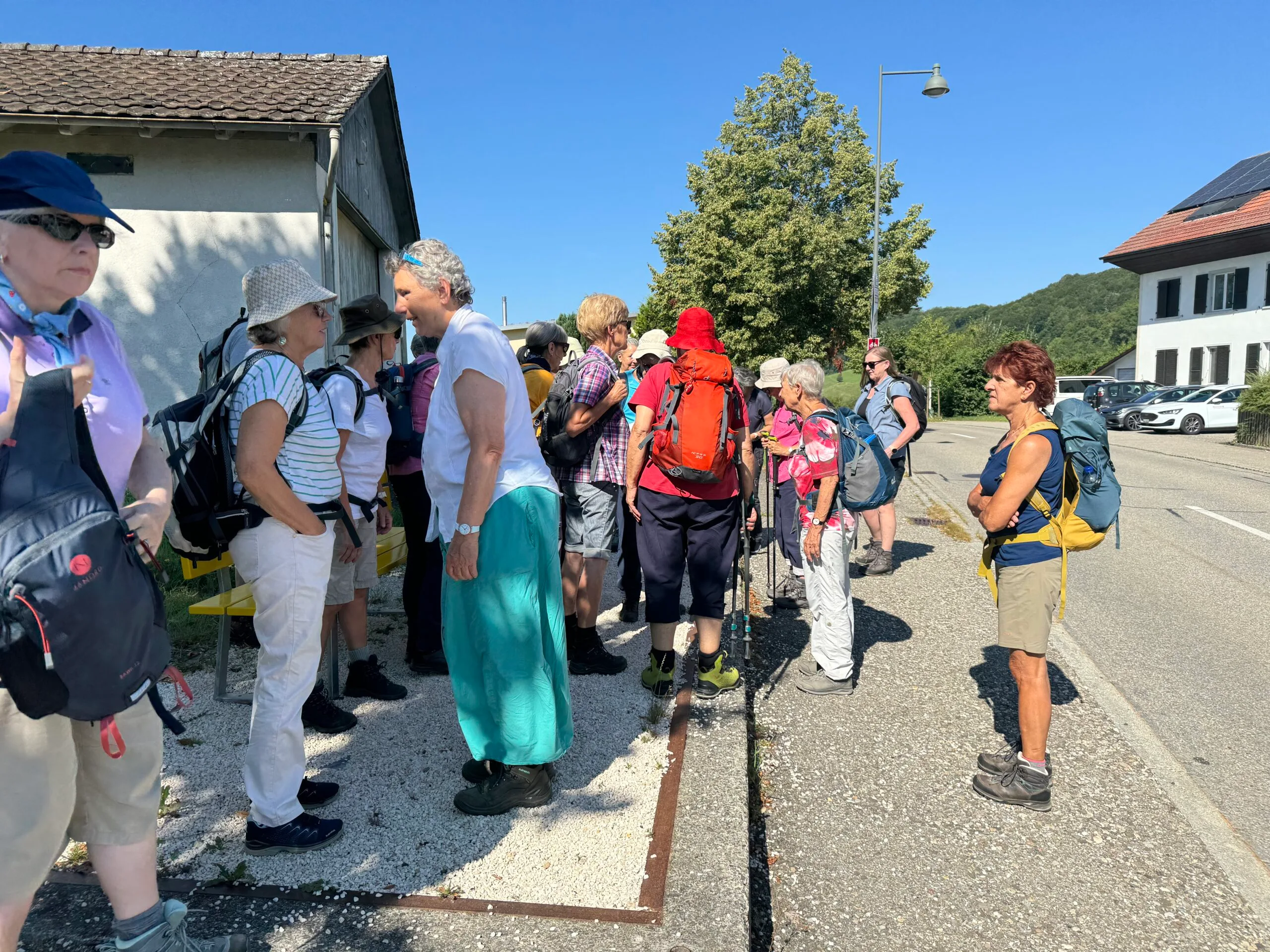 23 Naturfreunde sind sich bewusst, dass heute bei angesagter Temperatur von 30 Grad der Schweiss nicht ausbleibt. Was soll‘s? Wir fahren mit der SBB und dem Postauto nach Wisen im Kanton Solothurn ganz egal, was die Wetterfrösche in den Medien schwadronieren.