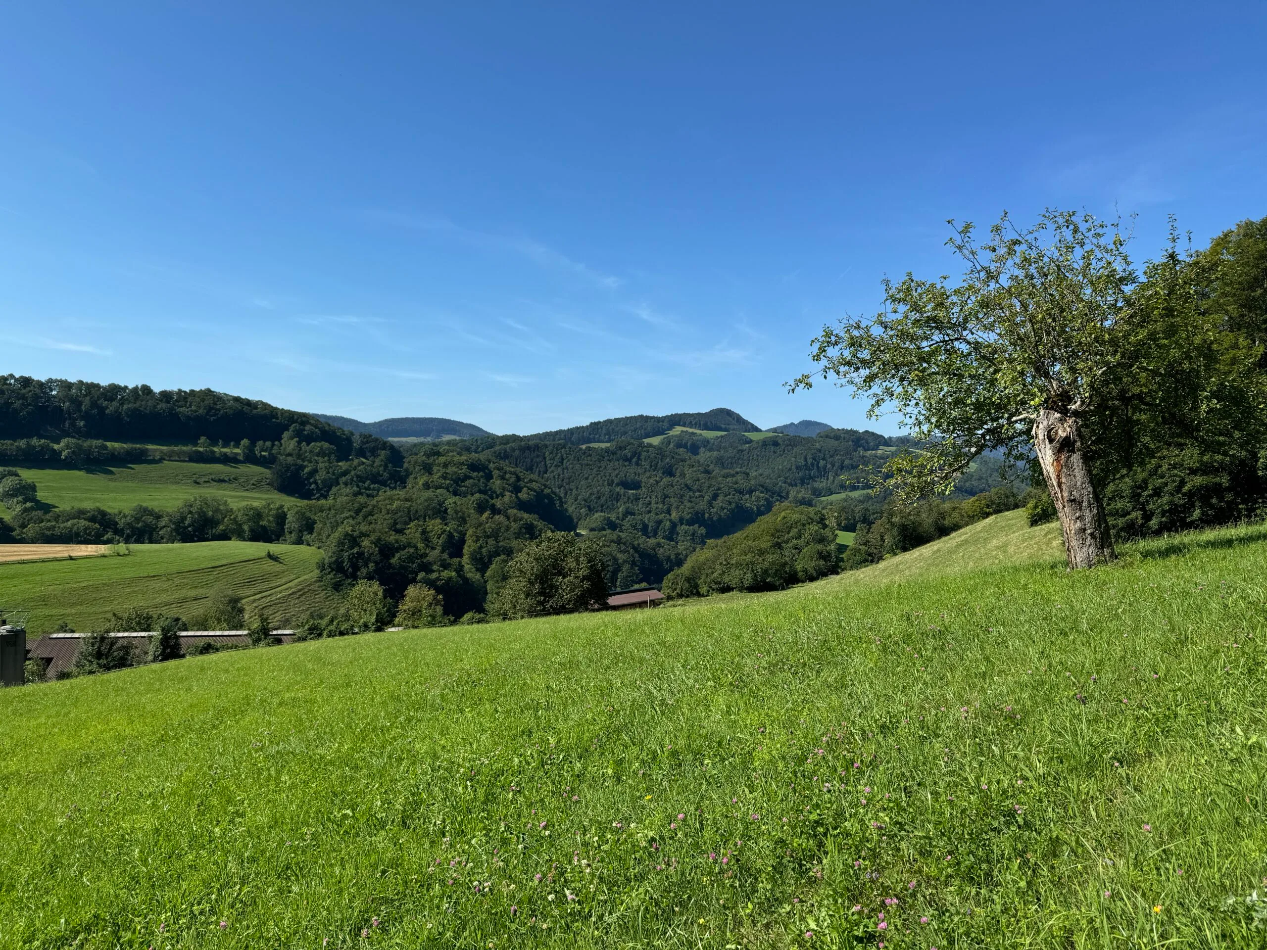 Der letzte Schweiss wird abgetrocknet und gestärkt wandern wir auf dem Wisenbergweg rund um den Wisenberg bis unterhalb des Zäntehübels, dann unterhalb der Felsen des Geisshörnli zum Hofgut Mapprach. Das Hofgut Mapprach ist ein über Jahrhunderte gewachsenes Kulturdenkmal. Es wird sowohl als Kulturgut mit Veranstaltungen als auch mit einem Landwirtschaftlichen Bauernhof betrieben.