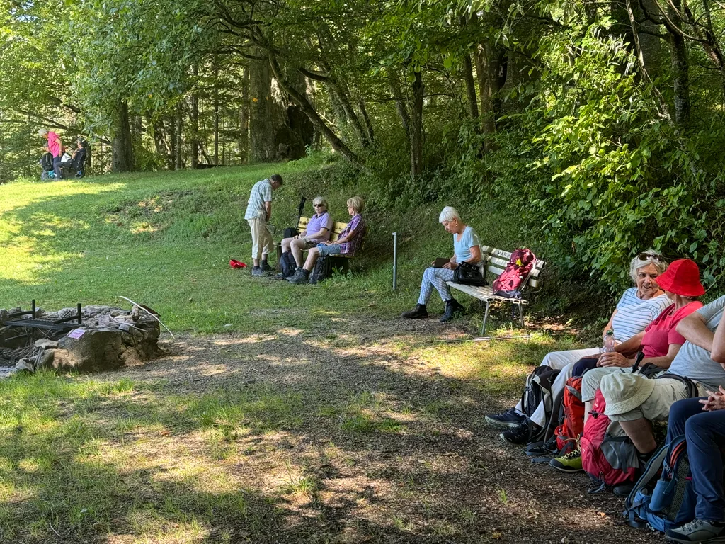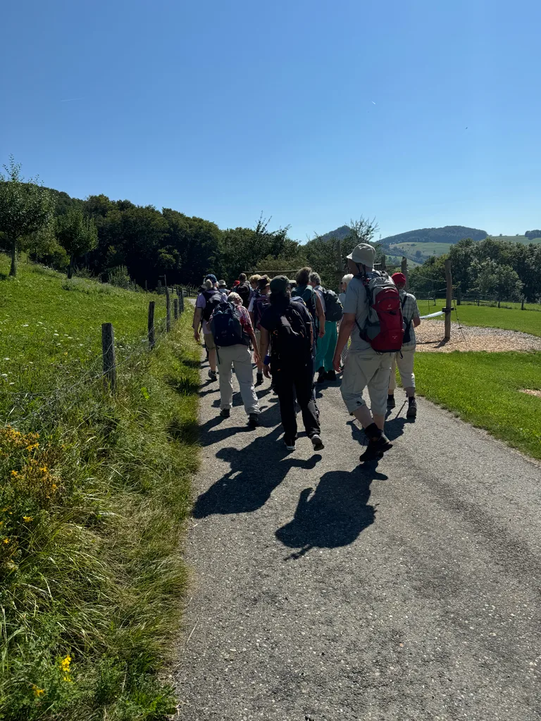 23 Naturfreunde bedanken sich bei der Wanderleiterin Nelly für die angenehme Führung dieser Wanderung an einem heissen Sonntag im Sommer 2024.