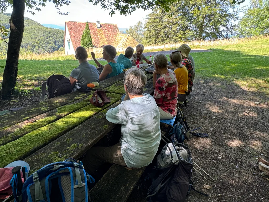 Der Schweiss tropft bereits nach dem ersten Aufstieg über den Schäggenacker und Nättleten zum Hupp von der Stirn. Im Gebäudekomplex Hupp befindet sich das Tageszentrum für Jugendliche in komplexen Lebenslagen, betreffs ihrer beruflichen wie auch sozialen Integration. Dem Fuss des Wisenbergs entlang beginnt nach 200m ein zweiter Schweiss treibender Aufstieg zum Gehöft Obere Hupp mit der „Hupp Lodge“. Sie soll eine traumhafte Oase mit Natur pur sein. Uns treibt es weiter über den Vorderen Wisenberg wo sich rechter Hand die Treppen zur „Tüfelschuchi“ und der „Steirüti“ zeigen. Heute ist Sonntag und da hat der „Tüfel“ Wirtesonntag, also geht’s links den Weg hinunter und vorbei direkt zum Mittagessen am Picknickplatz „Grossi Bueche“.